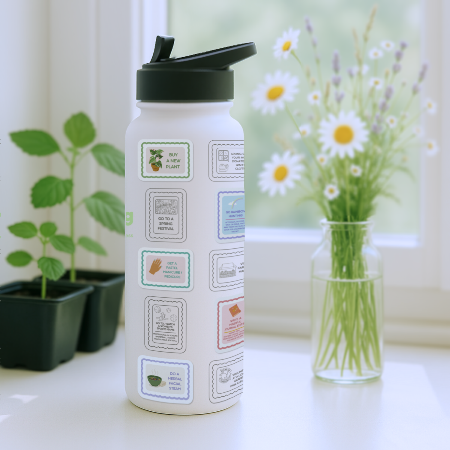 Includes 28 Spring-Themed Stickers For Your Water Bottle